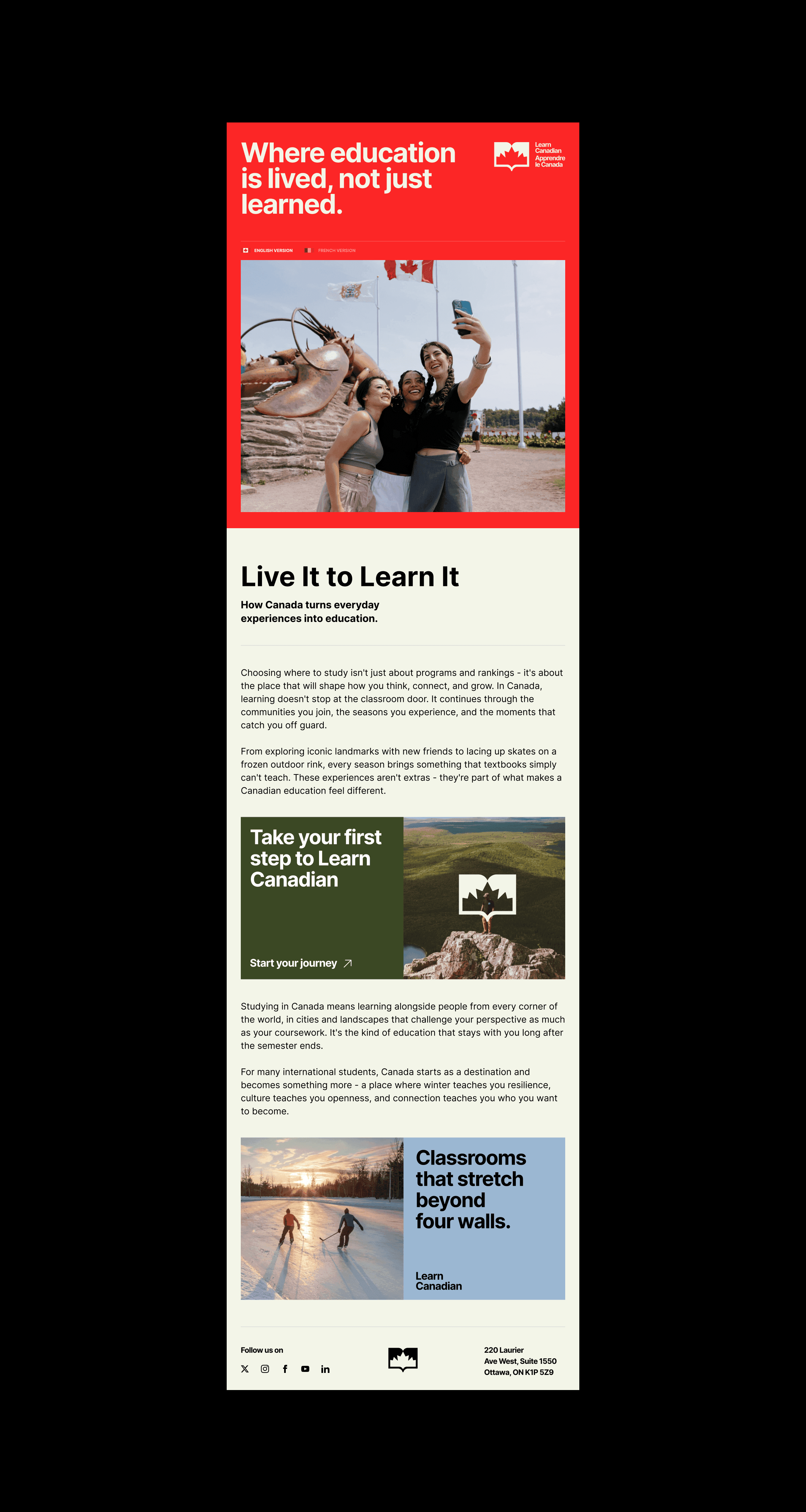 I designed the social campaign - posts for students and parents (English and French), lead magnet, brand assets. Clear messaging for both audiences.