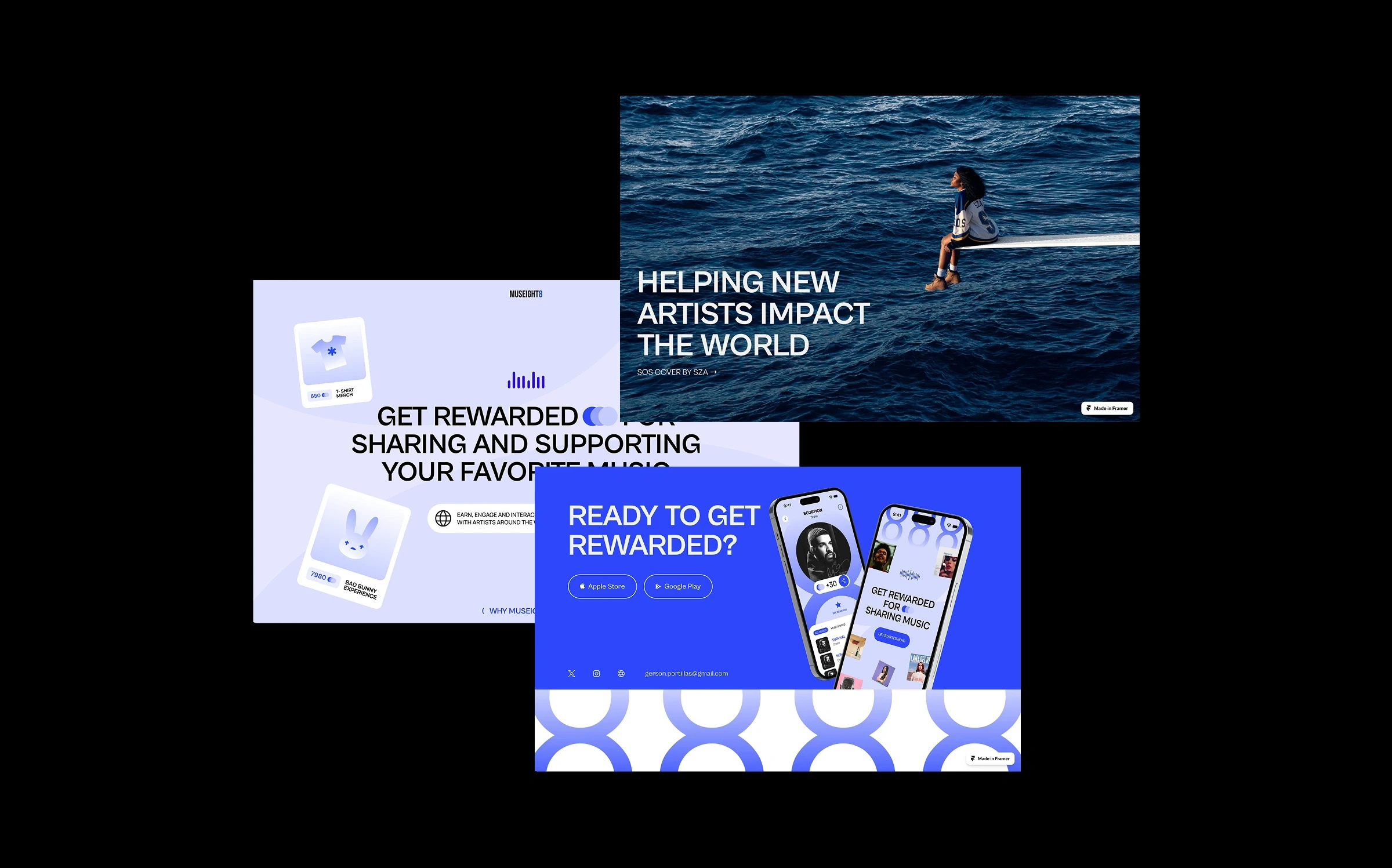 Museight is a platform concept built to incentivize music sharing and promotion - the more you support emerging artists, the more you earn access to exclusive content and experiences.